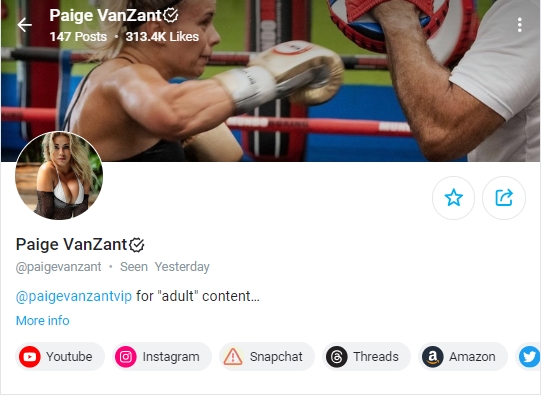 पैगी वैनजेंट, एक पेशेवर मिक्स्ड मार्शल आर्टिस्ट और भूतपूर्व UFC फाइटर, OnlyFans पर सक्रिय रही हैं। वह अपने प्रशंसकों के साथ विशेष सामग्री साझा करने के लिए इस मंच से जुड़ीं, जिसमें उनके जीवन की झलकियाँ, फिटनेस टिप्स और व्यक्तिगत अपडेट शामिल हैं।