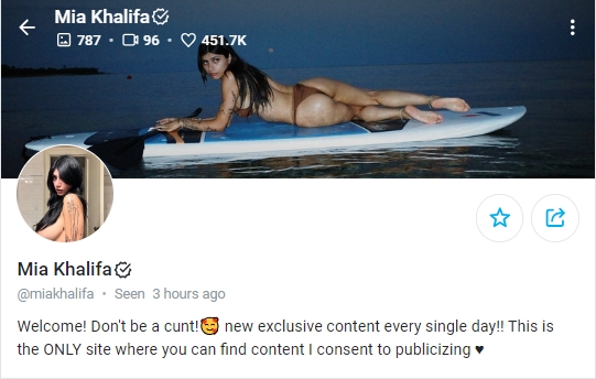 Mia Khalifa, a former adult film actress, has been active on OnlyFans. She joined the platform to engage with her fans and share exclusive content, including photos and videos, which are not available on her other social media accounts. Her presence on OnlyFans allows her to connect with her audience in a more personal and direct manner.